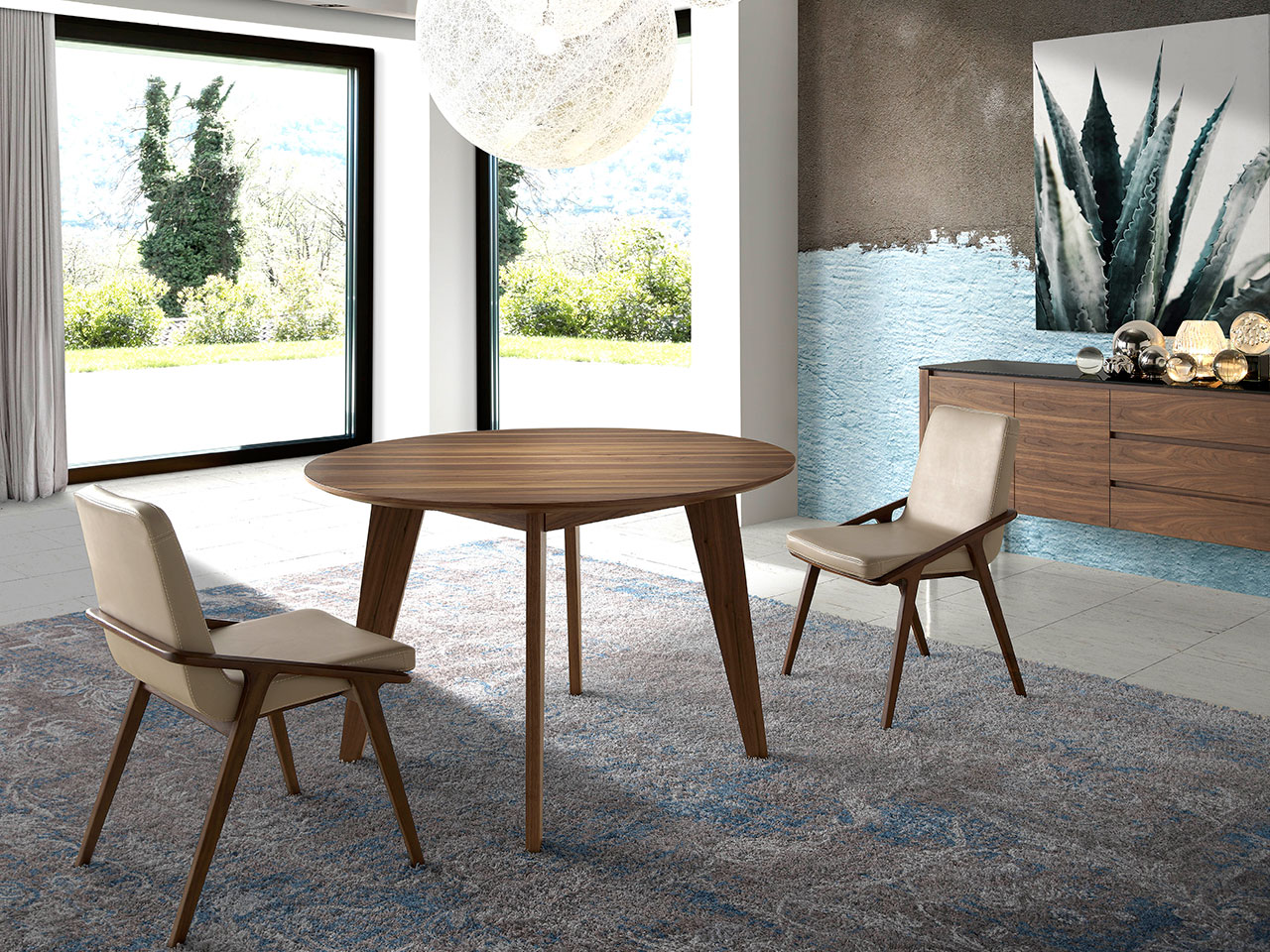 25kg/m3 폴리우레탄 폼으로 만든 좌석과 등받이가 있고 인조 가죽으로 덮은 식탁 의자. 호두색으로 칠해진 물푸레나무 구조는 귀하의 집에 따뜻함과 우아함을 더해 줄 것입니다. Angel Cerdá의 이 현대적인 디자인 의자는 브랜드의 독특한 스타일과 개성은 물론 부드러운 커버와 독창적인 다리 구조 덕분에 최대의 편안함과 안정성을 결합합니다. 다이닝룸을 위한 필수 디자인 아이템입니다.
